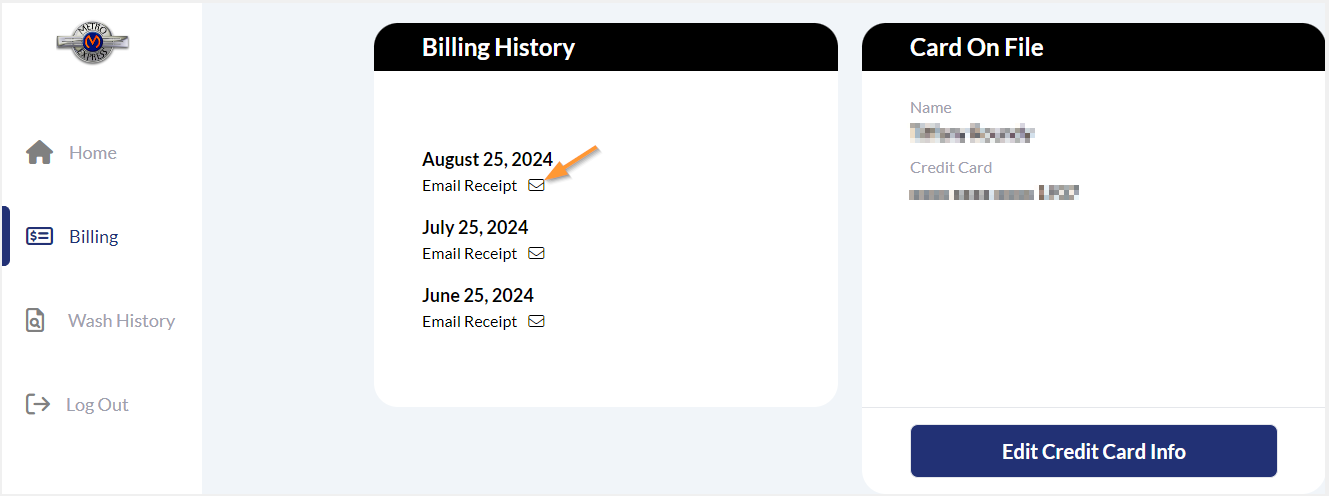 If you need a receipt for a single wash use then you'll want to reach out to our customer service team either through info@metroexpresscarwash.com or call us at (208) 820-2077.