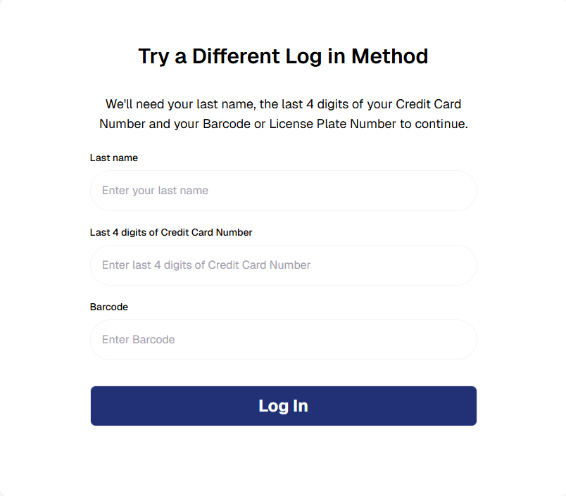 Then with the last name, last four digits of the card on file, and the Fast Pass number in your windshield you'll be able to log in.